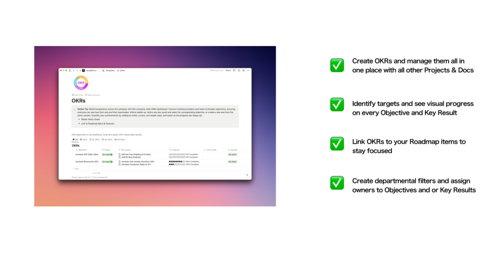 ✅ Create OKRs and manage them all in one place with all other Projects & Docs